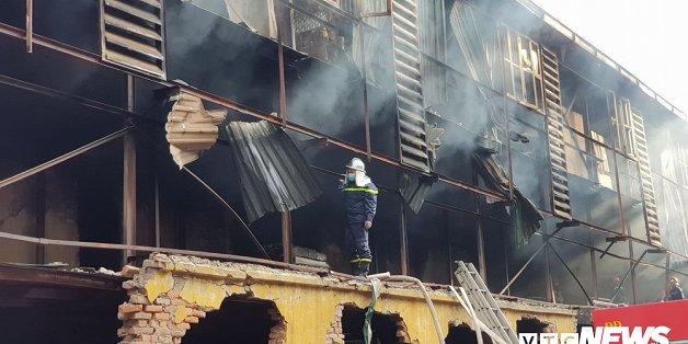 Đến sáng nay, lực lượng chức năng vẫn đang tiếp tục chữa cháy tại khu nhà xưởng Công ty phích nước Rạng Đông.