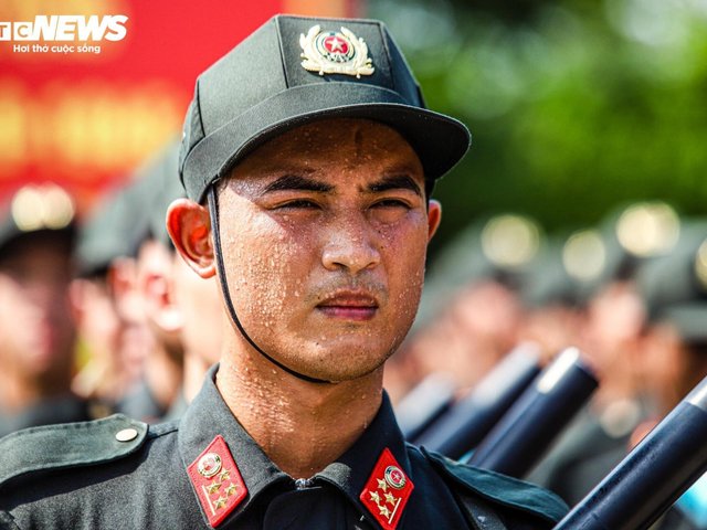 Dưới cái nắng 38°C tại Hòa Lạc, các chiến sĩ công an với gương mặt rám nắng, đẫm mồ hôi vẫn miệt mài luyện tập, chuẩn bị cho lễ diễu binh mừng Quốc khánh 2/9.