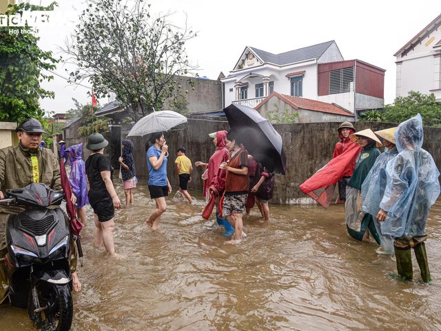 Mưa lớn do hoàn lưu bão số 3 khiến nhiều khu dân cư ven biển Thanh Hoá ngập sâu gần 1m, người dân khẩn cấp di dời đồ đạc, đưa lợn đi chạy lụt.