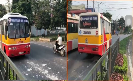 Xe buýt chở khách ngang nhiên đi ngược chiều ở Thái Nguyên