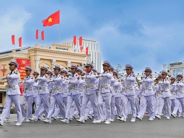 44 khối thuộc lực lượng vũ trang và các tầng lớp nhân dân, doanh nghiệp tham gia duyệt đội ngũ và diễu hành, chào mừng kỷ niệm 70 năm Giải phóng thành phố.