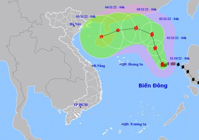 Lúc 4h hôm nay 31/10, bão số 7 giật cấp 12, cách quần đảo Hoàng Sa khoảng 590km về phía Đông và được dự báo liên tục đổi hướng, mạnh dần lên trong 24 giờ tới.
