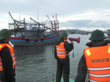 Cán bộ Đồn Biên phòng Quỳnh Thuận, tỉnh Nghệ An hỗ trợ ngư dân neo đậu tàu thuyền.