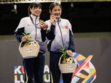 Vũ Thành An và Nguyễn Văn Quyết (thứ nhất và thứ hai từ phải sang) cùng giành HCV tại SEA Games 31.
