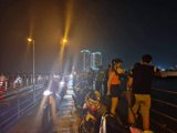 Người dân tập trung trên cầu theo dõi vụ việc.