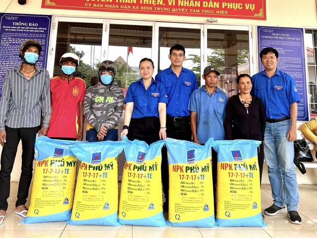 Vào sáng ngày 4/8/2024, tại Lễ tổng kết chương trình mùa hè xanh của cụm phối hợp hoạt động BRVT của Đoàn Tập đoàn Dầu khí, Đoàn thanh niên Tổng công ty Phân bón và Hóa chất Dầu khí (PVFCCo) đã trao tặng 1 tấn phân bón NPK Phú Mỹ 17-7-17+TE cho các hộ gia đình có hoàn cảnh khó khăn tại xã Bình Trung, huyện Châu Đức, tỉnh BRVT.