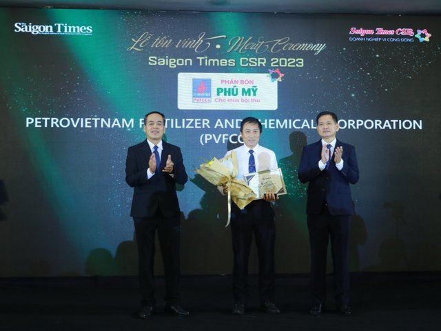 Ngày 15/11, Tổng Công ty Phân bón và Hóa chất Dầu khí (PVFCCo - Mã chứng khoán DPM) lần thứ 3 liên tiếp được vinh danh là “Doanh nghiệp phát triển bền vững vì cộng đồng” trong buổi lễ “Saigon Times CSR 2023” do Tạp chí Kinh tế Sài Gòn (Saigon Times Group) tổ chức.