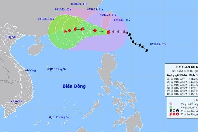 Lúc 1h ngày 5/10, bão Koinu duy trì cấp 14, giật cấp 17 trên vùng biển phía Đông Nam đảo Đài Loan (Trung Quốc), bão giữ tốc độ 15 km/h và áp sát Biển Đông.