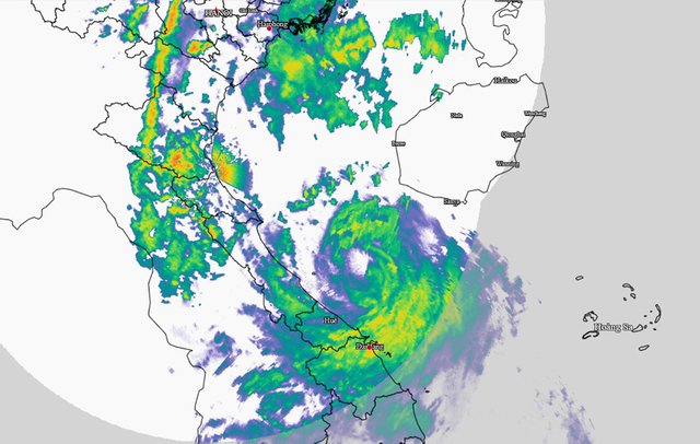 Bão số 10 Bualoi hiện trên vùng biển Quảng Trị - Đà Nẵng, cách TP Huế khoảng 140km và vẫn duy trì cường độ mạnh, dự báo trong 12 giờ tới bão mạnh lên.
