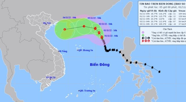 Sáng sớm nay 1/11, bão số 7 giật cấp 13, có thể mạnh thêm trong 12 giờ tới và được dự báo ít có khả năng ảnh hưởng trực tiếp đất liền nước ta.