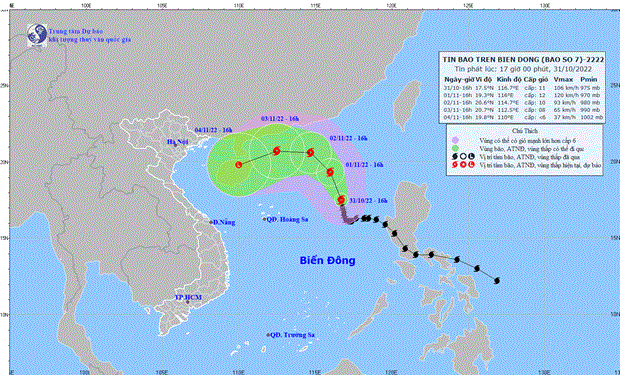 Trung tâm Dự báo Khí tượng Thủy văn Quốc gia cho biết, bão số 7 có khả năng mạnh thêm trong 24 giờ tới, sau suy yếu dần, dự báo ít ảnh hưởng trực tiếp đến đất liền nước ta.