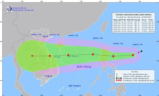Theo Trung tâm Dự báo Khí tượng Thủy văn Quốc gia, Noru là cơn bão mạnh, di chuyển nhanh, phạm vi ảnh hưởng rộng lớn, còn phức tạp khi đi vào Biển Đông và sẽ đổ bộ vào miền Trung.