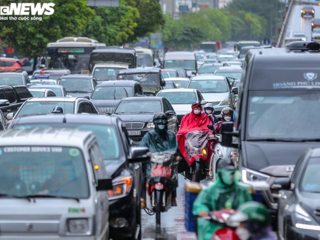 Ảnh: Dòng xe nhích từng chút dưới trời mưa rét ở Hà Nội sáng đầu tuần