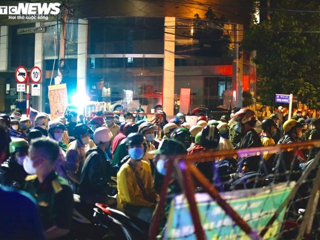0h00, chốt kiểm soát dịch tại phường Phú Thọ có hàng trăm người chờ qua chốt để về quê, lực lượng chức năng phải ra sức vận động người dân quay đầu xe.