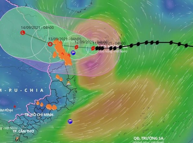 Vào 4 giờ sáng nay (11/9), tâm bão chỉ cách bờ biển Quảng Trị-Quảng Nam khoảng 230km về phía Đông.