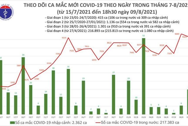 Theo thống kê của Bộ Y tế, hôm nay (9/8), Việt Nam ghi nhận 9.340 ca COVID-19, trong đó TP.HCM 3.991 người, tăng 93 ca.