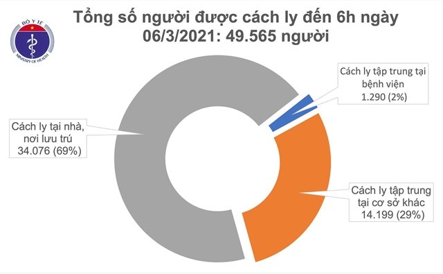 Sáng 6/3, theo thống kê của Bộ Y tế, Việt Nam ghi nhận thêm 6 ca mắc COVID-19 mới tại Hải Dương và Thái Nguyên.