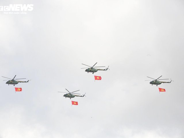 Các phi đội trực thăng, tiêm kích hợp luyện chuẩn bị cho Lễ diễu binh, diễu hành kỷ niệm 50 năm Ngày thống nhất đất nước.