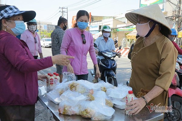 Chỉ không đến một giờ, nhóm của ông Trung đã phát xong hơn 500 hộp cơm cho người nghèo.