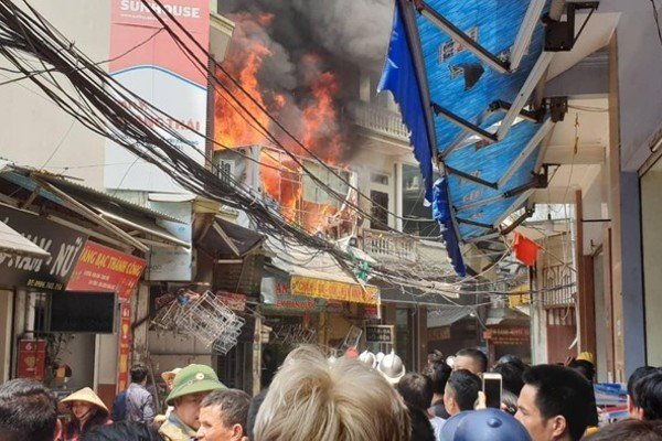 Nhà 4 tầng bán chăn ga trong ngõ Hà Nội bốc cháy ngùn ngụt