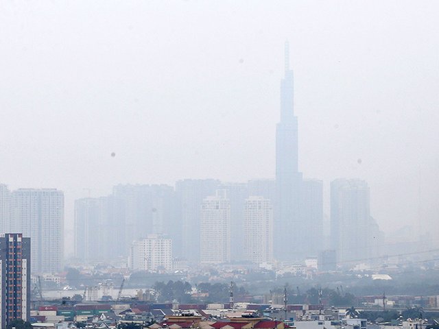 Sài Gòn xuất hiện lớp mù đặc quánh khiến tầm nhìn hạn chế, các tòa nhà như bị biến mất sau lớp màu trắng đục; ô nhiễm không khí đang ở mức nặng.