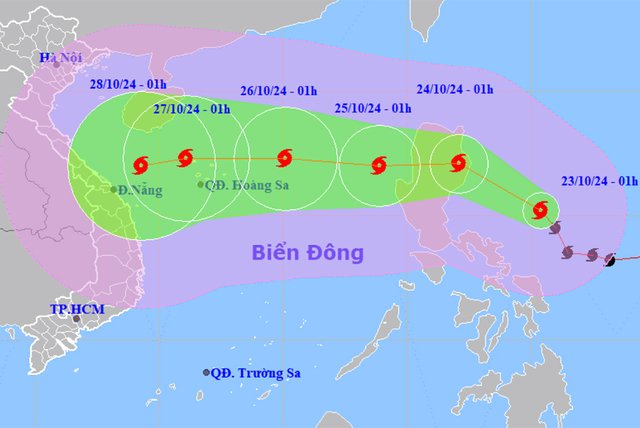 Theo dự báo của cơ quan khí tượng, ngày mai 24/10, bão Trami tiến vào Biển Đông, trở thành cơn bão số 6 trong năm và liên tục tăng cấp.