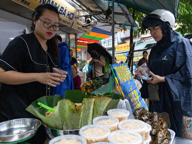 Người dân đội mưa đi sắm lễ trong ngày Tết Đoan Ngọ ở Hà Nội