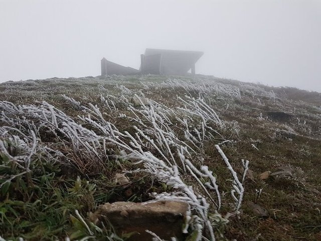 Băng giá bao phủ đỉnh Phia Oắc, Cao Bằng