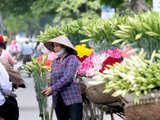 Dù vội đến mấy nhiều người vẫn sẵn lòng dừng chân ghé lại những gánh hoa ven đường để chọn mua vài cành loa kèn đầu mùa thật đẹp |