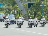 Đội cảnh sát giao thông Việt Nam dẫn đường bảo vệ đoàn xe Tổng thống Nga Putin từ sân bay Nội Bài về khách sạn Metropole ở quận Hoàn Kiếm, Hà Nội lúc rạng sáng 20/6. (Ảnh: Nam Trần)