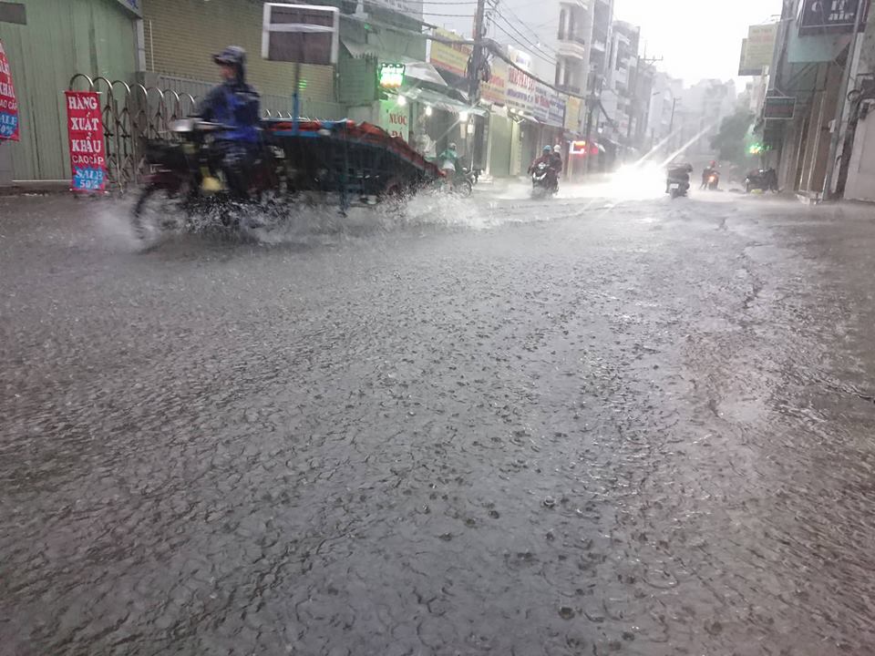 Ghi nhận vào lúc 15h cùng ngày, mưa bắt đầu nặng hạt và gió giật mạnh khiến người dân di chuyển khó khăn trên đường phố. Một số quận huyện đã bắt đầu xảy ra tình trạng ngập cục bộ như quận Thủ Đức, Gò Vấp, Quận 8...