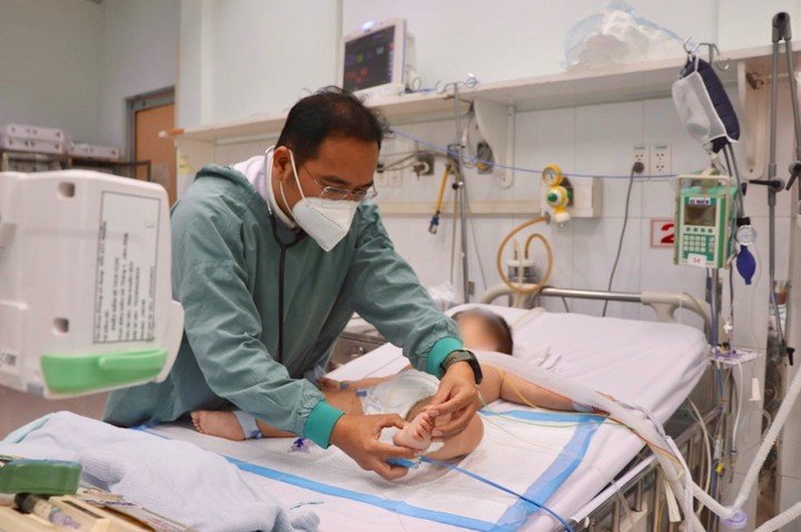 Khi nhập Bệnh viện Nhi đồng 2, SPO2 của bé còn 75%, suy hô hấp, suy tim và được chỉ định lọc máu, thở máy, dùng thuốc vận mạch. Sau 3 ngày điều trị bé đã được ngưng lọc máu, ngưng thuốc vận mạch và tiếp tục theo dõi di chứng thần kinh.