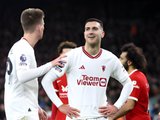 Hậu vệ người Bồ Đào Nha tỏ rõ sự không hài lòng. Điều này khiến anh nhận 2 thẻ vàng liên tiếp từ ông Michael Oliver. Ở ngoài đường biên, HLV Erik ten Hag ngỡ ngàng, không hiểu điều gì đang xảy ra.