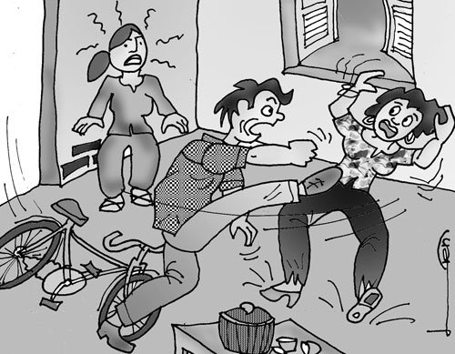 <strong>Buổi sáng tại nhà Bình. Bình dậy sớm tập thể dục. Anh tập đạp xe trong nhà. Bình cắm đầu cắm cổ đạp cho đến khi kim đồng hồ chỉ được 10km.</strong>