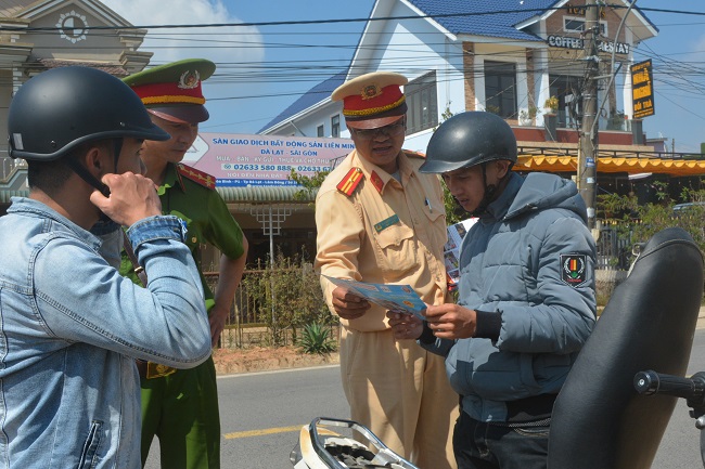 | CSGT-TT Công an TP Đà Lạt tuyên truyền pháp luật về giao thông tới người dân |