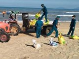 Những ngày qua, song song với việc thu gom hơn 200 tấn dầu vón cục trôi dạt vào vịnh Lăng Cô (huyện Phú Lộc, TP Huế), chính quyền địa phương cũng tích cực dọn dẹp lượng lớn rác thải trôi dạt từ biển vào bủa vây khu vịnh từng được xem là vịnh đẹp thế giới.
