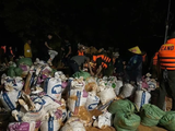 Vì vậy, hàng trăm người dân và các lực lượng chức năng đã khẩn trương chuyển bao đất, cát tới vị trí vỡ đê để gia cố.