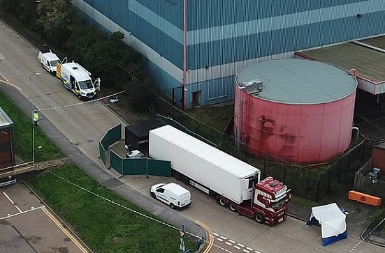 Ngày 23/10/2019, 39 thi thể người Việt Nam đã được tìm thấy trong một thùng xe container đông lạnh đỗ tại khu công nghiệp ở thị trấn Grays. Chiếc xe này được đưa họ từ Bỉ đến Anh qua đường phà. Vụ việc này liên quan đến hoạt động buôn người và vận chuyển người trái phép qua biên giới.