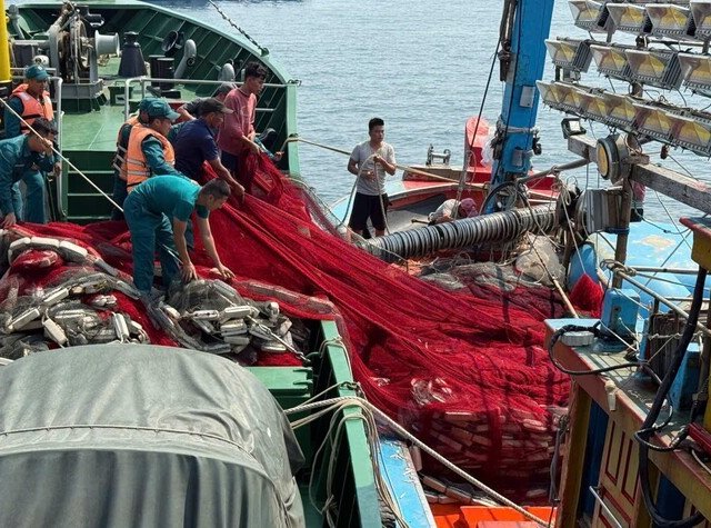 12 ngư dân cầu cứu khi tàu cá QNg 48988 TS bị thủng đáy do va chạm đá ngầm, khiến nước tràn vào khoang.