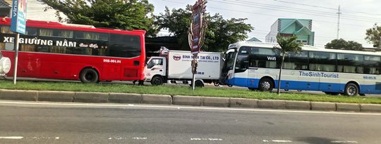 Xe khách húc đuôi xe tải, gây tai nạn cho 3 xe tại chốt đèn đỏ