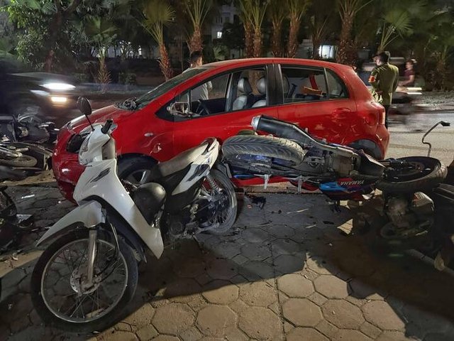 Đình chỉ trưởng công an xã ở Hà Nội lái ô tô tông 6 xe máy