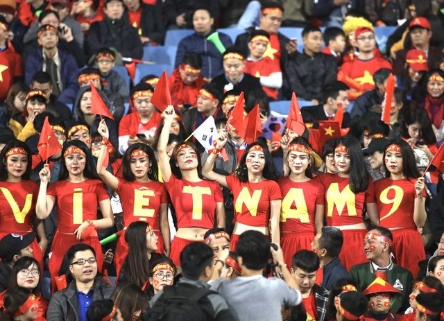 Khán đài đỏ rực ở sân Mỹ Đình