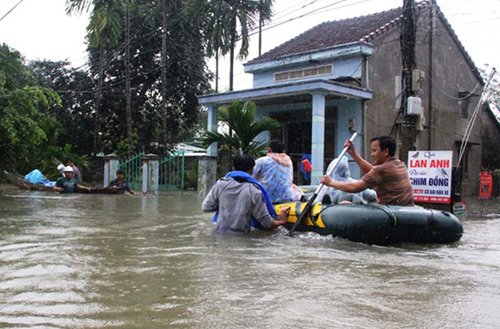 Giải cứu thai phụ cùng 2 con nhỏ kẹt trong ngôi nhà bị ngập ở Đà Nẵng