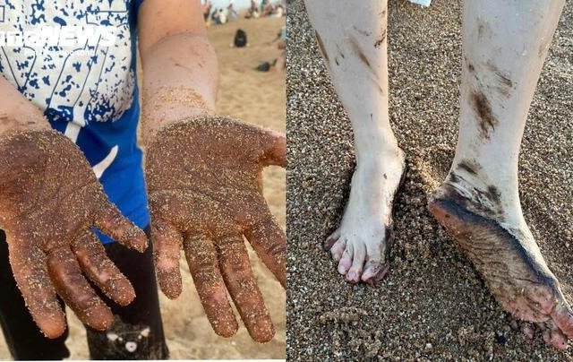 Trang 1Dầu vón cục dính đầy người tắm biển ở Phú Yên