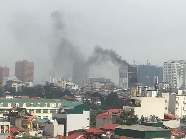 Đám cháy bùng phát tại tòa nhà đang xây dựng trên đường Hoàng Quốc Việt, Hà Nội khiến nhiều người sợ hãi.