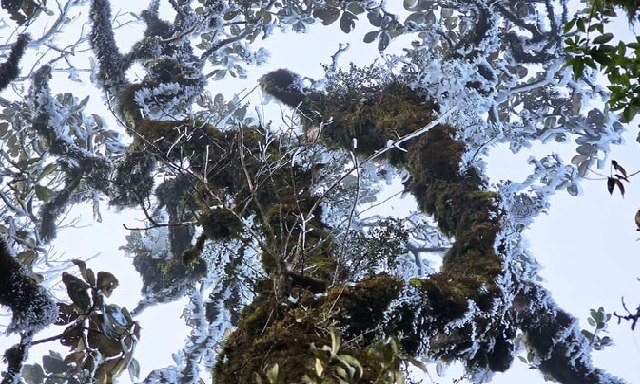 Nhiệt độ ngoài trời giảm xuống 0°C khiến băng giá xuất hiện trên đỉnh núi Tà Xùa (Yên Bái), cao 2.865m so với mực nước biển.