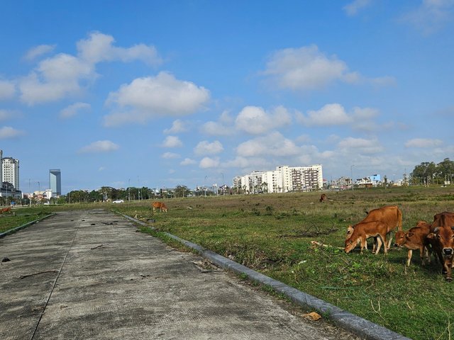 Công trình quảng trường, công viên cây xanh tại khu hành chính tập trung TP Huế có trị giá đầu tư hơn 100 tỷ đồng thành nơi chăn thả bò, nhếch nhác, uế tạp.