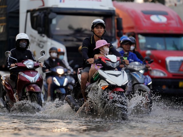 Triều cường đạt đỉnh giờ tan tầm, người TP.HCM lại bì bõm lội nước về nhà