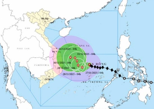 Áp thấp nhiệt đới trên vùng biển Philippines đã mạnh lên thành bão, có tên quốc tế là Koto. Sáng 26-11 đã tiến vào Biển Đông, trở thành cơn bão số 15 trong năm 2025.