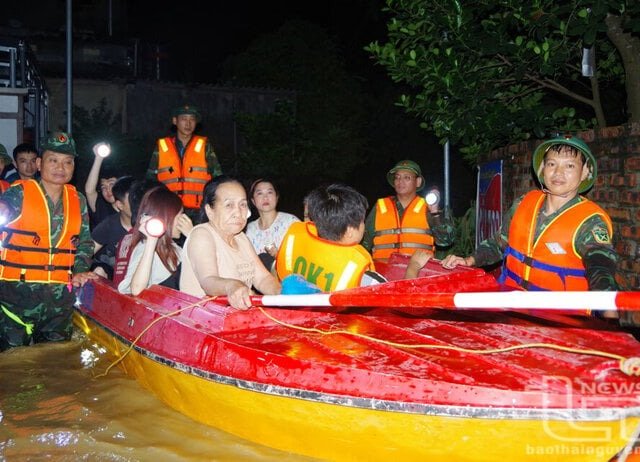 Mực nước sông Cầu dâng cao gây ngập úng nhiều khu vực tại TP Thái Nguyên, người dân phải di dời trong đêm đi tránh lũ.